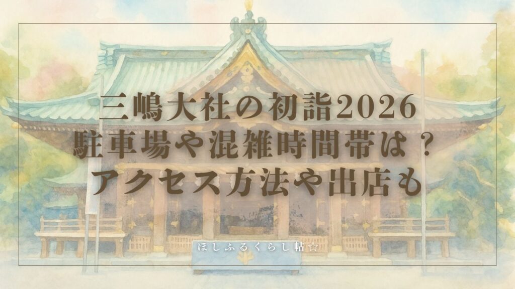2026年のお正月、静岡県三島市にある三嶋大社への初詣を計画されている方へ。毎年約60万人が訪れる人気スポットだけに、気になるのは混雑状況や駐車場のことですよね。 結論から言うと、三嶋大社の専用駐車場は初詣期間中(12/31~1/3)は閉鎖されるため、... -