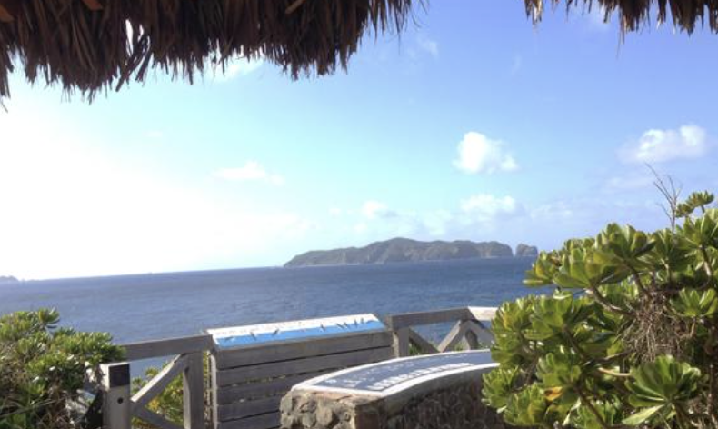 脇浜なぎさ公園の中にある展望台で、周辺の無人島を見渡せる素敵な場所。向島や平島といった無人島が浮かぶ景色は、母島ならではの風景です。
