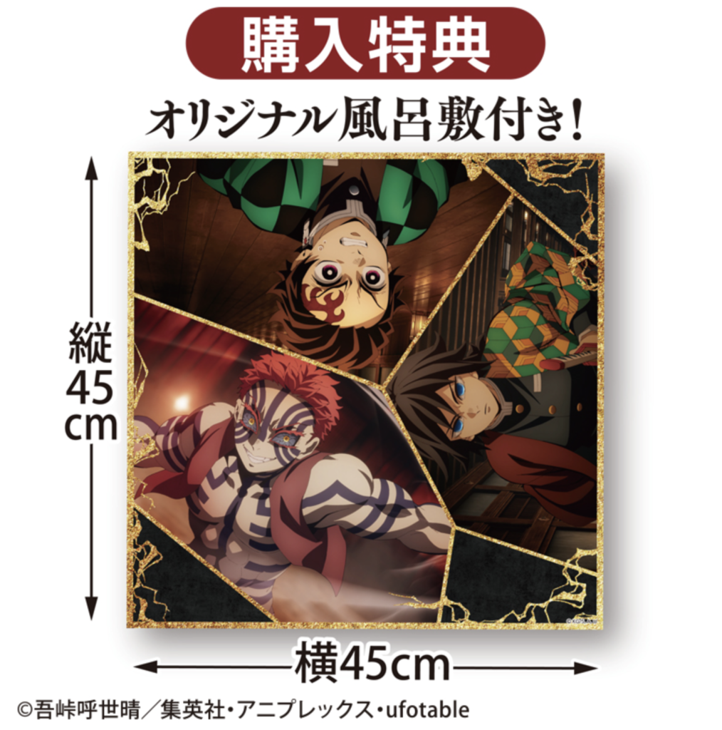 購入特典:炭治郎・義勇・猗窩座デザインのオリジナル風呂敷(約45cm×45cm)