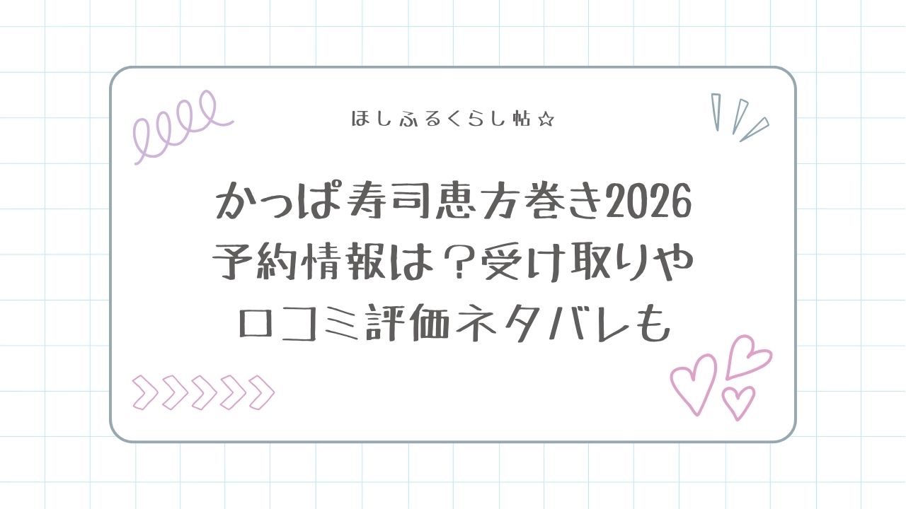 かっぱ寿司の恵方巻きなら、お財布に優しくて味も本格的で、家族全員が満足できるはずです!まだ予約してない方は、ぜひ早めにチェックしてみてくださいね♪