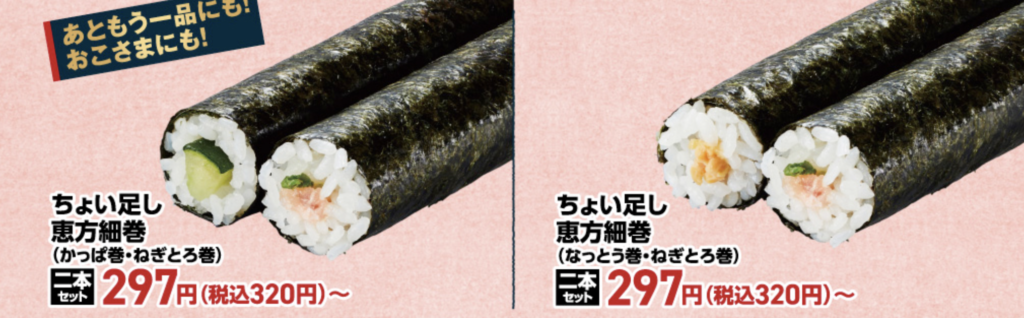 ちょい足し恵方細巻(2本セット)320円(税込)~