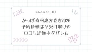 2026年のくら寿司恵方巻きは、シナモロールとの夢のコラボで大注目です。見た目も味も楽しめる、特別な節分になりそうですね。私も予約済みで、当日が待ち遠しいです♪